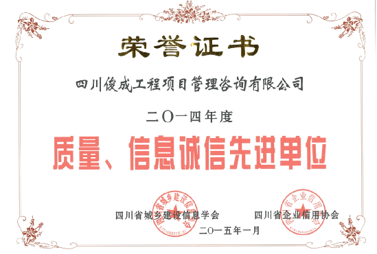 俊成建昱工程集團有限公司始建于二零零九年二月,中凱俊成建設(shè)咨詢有限公司為旗下子公司,公司分別位于四川省成都市成華區(qū)、德陽市凱州新城,公司注冊資本5000萬元人民幣。中凱俊成通過了ISO9001質(zhì)量管理體系、ISO14001環(huán)境管理體系、ISO45001職業(yè)健康安全管理體系認證。 公司目前具有工程監(jiān)理綜合資質(zhì),工程造價咨詢甲級資質(zhì),工程招標代理甲級資質(zhì),冶金行業(yè)(冶金礦山工程) 甲級設(shè)計.....[詳情]